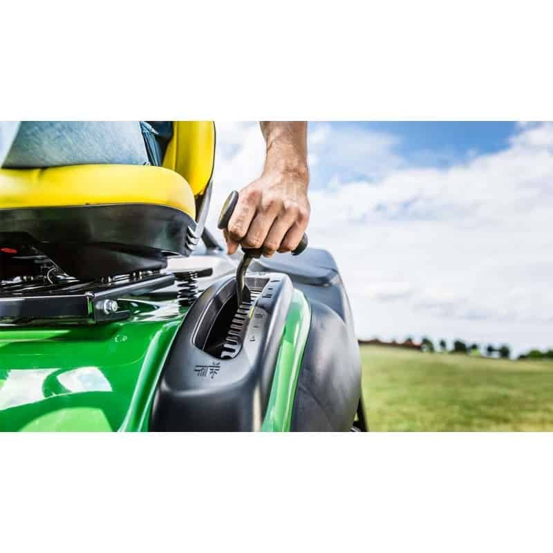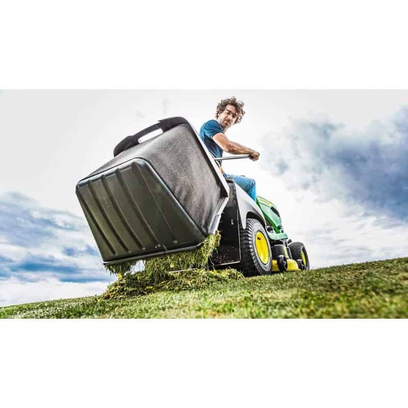 L’une des caractéristiques de la série X100 est sa robustesse. Ce tracteur-tondeuse est doté d’un châssis à pièce unique en acier auquel est fixé un carter, d’un essieu avant en fonte et d’un capot moteur qui ne rouille pas.